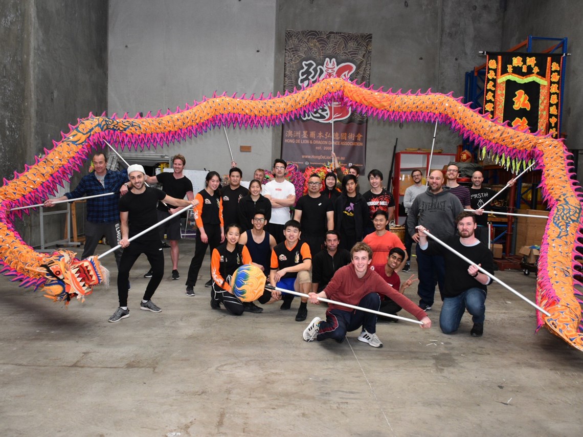 We were approached by a theatre company to help with one song in the production which requires a dragon. Over two training sessions, we had a crew of 11 training basic training techniques in dragon dance. Then, ouir dragon coach choreographed a short routine for them to perform on stage. We would like to wish the Miss Saigon crew from The Old Scotch Music and Drama Club the best of luck over the next few weeks. The opening night is this Friday night at the Geoffrey McComas Theatre at Scotch College, Hawthorn. Tickets can be purchased at www.osmad.com.au.